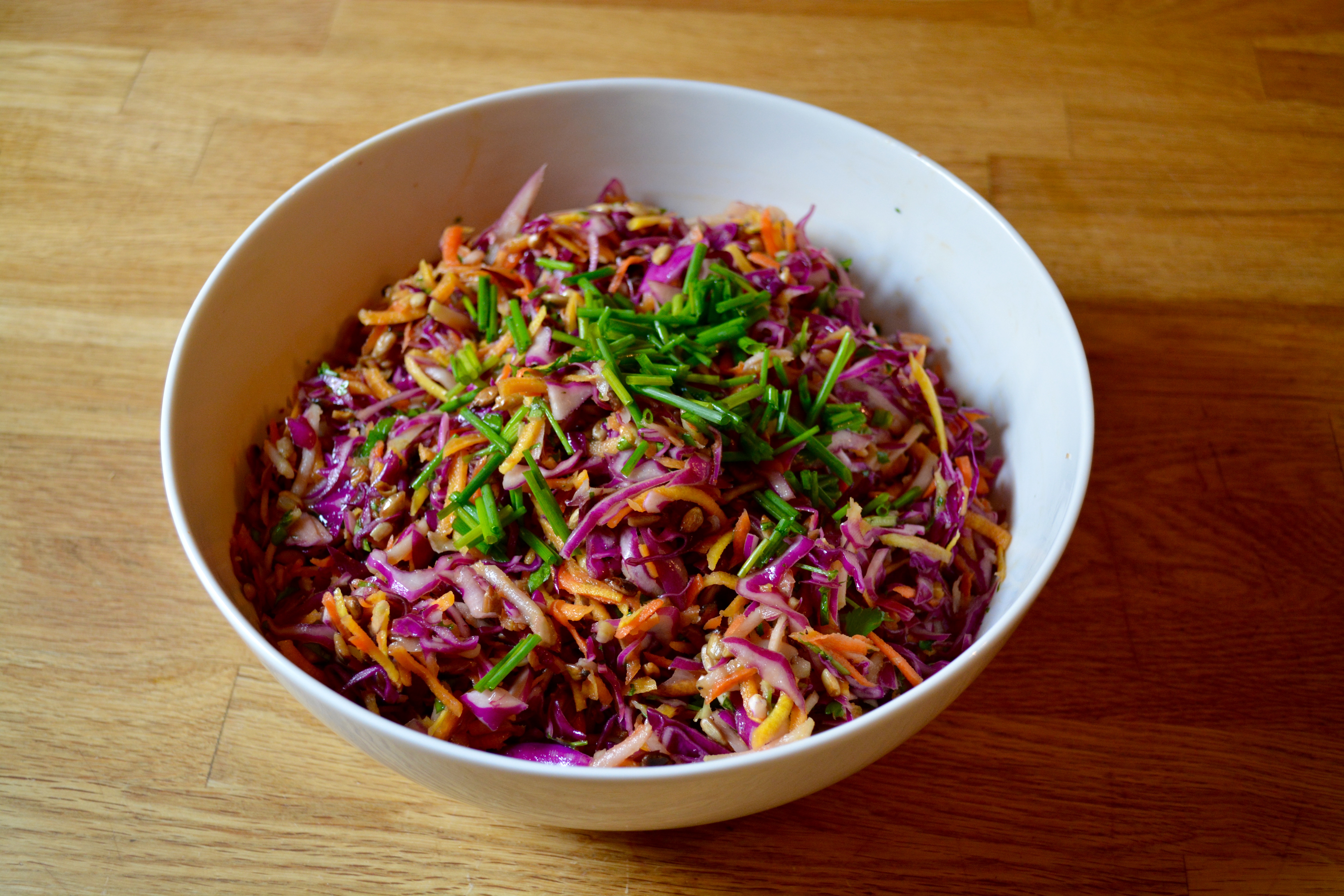 Chop the potatoes into bite-sized cubes and add to the dressing. Sprinkle with rosemary, sunflower seeds, and kale. You can also add about a teaspoon of lemon zest for an extra zing. Combine all the ingredients and let the salad sit for about an hour so the potatoes and kale can absorb the dressing. That’s it!